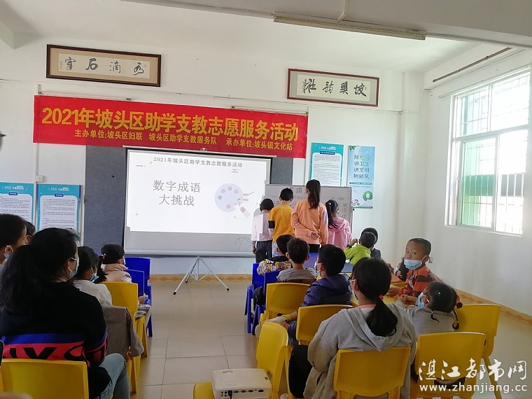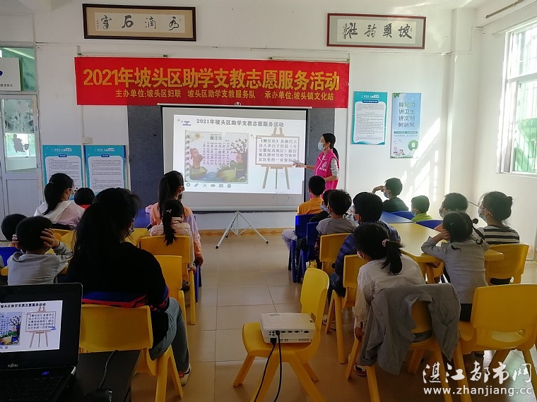 2021年11月13日(周六)上午,坡头区创建全国文明城市工作办公室、坡头区妇联、坡头镇创文办、坡头镇妇联、坡头镇文化站、湛江市情暖湛江志愿者协会和N1107壹基金儿童服务站(坡头镇文化站)联合开展2021年坡头区助学支教志愿服务活动。儿童和家长共40人在活动中受益。
