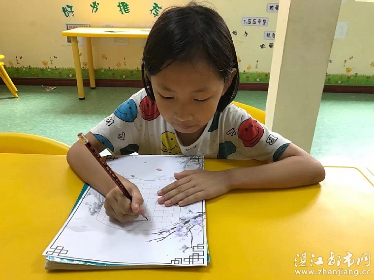 活动开始前由儿童服务站专职老师拿出提前准备好的活动材料,让孩子们挑选自己所喜欢的古诗词帖。孩子们拿到字帖后开始迫不及待的书写着自己最喜欢的一首古诗词。