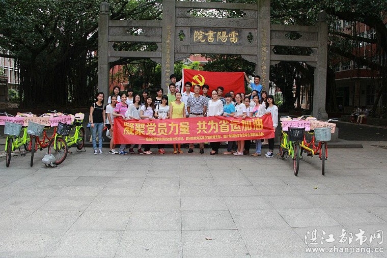 阅读(978) 回复(0) 查看全文>> - [2015-05-06]凝聚党员力量,共为省运加油 [图](通讯员/杨颖 摄影/黎品君)2015年5月4日,为迎接广东省第十四届运动会, 积极响应湛江市“全民健身迎省运”、“倡导绿色出行,建设脚印城市”的主题精神, 岭南师范学院学校教务处党支部、数计学院数学专业学生第四党支部与教科院教育系学生第四党支部共同前往湛江金沙湾广场联合开展以“凝聚党员力量,共为省运加油”为主题的党日活动。