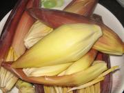 将蕉蕾剥去外面的较为硬的花瓣,留下鲜嫩的部分。