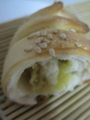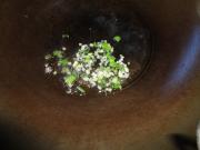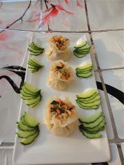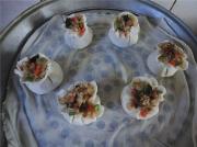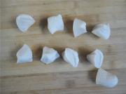 包入拌好的料,食指和拇指圈起来在中间捏出大肚小腰来,上面像开了花一样就完成了。
