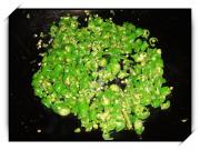 洗净炒锅搁炉上,放入辣椒粒煸炒。