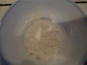 一碗中放入糖再入三分之一的面拌好(这样蒸时糖不会流出来)。