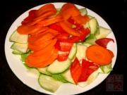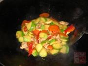 - [2011-06-30]西葫芦炒鸡脯肉 [图]材料:西葫芦一只,鸡脯肉、胡萝卜、红椒、姜、蒜、胡椒粉、生抽、盐适量。 1