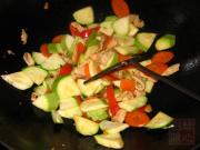 依次加如胡萝卜,红椒,西葫芦下锅煸炒。