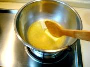 把钢盆坐到火上,把清水、黄油、盐倒入盆中。