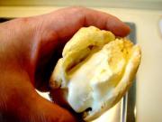 用冰淇淋勺舀一坨冰淇淋塞入其中,此冰淇淋泡芙便做好了。