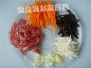 - [2013-01-21]鱼香肉丝 [图]主料: 猪瘦肉、冬笋、胡萝卜、黑木耳。 调味: 泡红椒、白砂糖、酱油、水淀粉、蒜末、葱花、醋、姜末、盐、料酒、食用油。 1