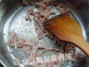 锅置火上油烧至六成热,下入肉丝滑至变色盛出备用。