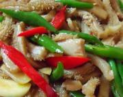 阅读(4002) 回复(0) 查看全文>> - [2013-01-08]蚝油牛肚 [图]原料:牛肚250克 青红尖椒各五个 配料:姜,蒜 蚝油,味精 糖,盐 芝麻油 1