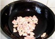 锅中放油烧热,下葱、姜末炒香,再放入五花肉。