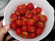 山楂用水冲洗干净之后用盐开水泡了一下。