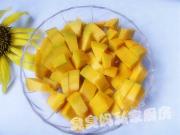 南瓜丁入沸水锅中隔水蒸熟取出。(往容器上盖个盘子可以避免水蒸气滴落)