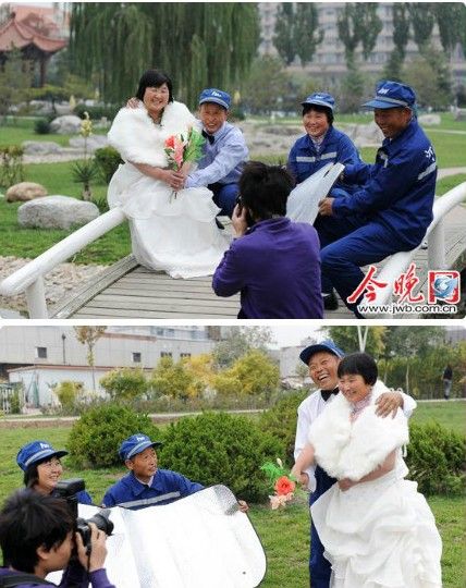 阅读(1863) 回复(1) 查看全文>> - [2011-10-27]55岁女环卫工补拍婚纱照 感动落泪 [图]10月26日是第十五个环卫工人节。本市河西区环卫四队请来志愿者摄影师,为两对环卫工人补拍了婚纱照,以此为他们庆祝节日。