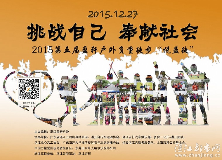 2015,不一样的徒步活动,盈轩户外第五届负重徒步悦益徒活动又要开始啦! 这湛江户外一年一度的盛事!即将拉开帷幕!你想去重温昔日竞赛的精彩吗?你想去寻找一种新的生活体验吗?你想对自我得以重新认知吗?你想在活动中认识、支持一直为湛江公益默默奉献的慈善团队,让更多爱心人士找到与自己有共同愿景的、心仪的慈善团队,让各个慈善团队凝聚更多力量共同为需要帮扶人群奉献爱心吗?