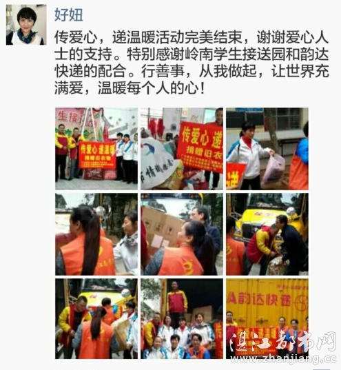 由湛江市情暖湛江志愿者协会、雏鹰教育岭南学生接送园、湛江市韵达快递公司联合举行的“传爱心,递温暖”捐赠旧衣物活动圆满结束了!