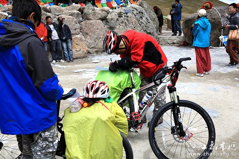 阅读(5506) 回复(1) 查看全文>> - [2014-11-14]西藏十日 三鞭指天路(之十九) 进藏的自行车骑手 [图]很多人会将进藏视为畏途,然而,在海拔数千米的雪域高原,却有为数不多的自行车骑手,三五成群,男的女的,也有独行侠,车后都装着满满的行囊,那奋力骑行的姿态感人至深。在米拉山口,我们遇见几个青年自行车友,正在海拔5013米高度的标示石头上照相。他们是从黑龙江过来的,已经骑行了数月。米拉山口离拉萨大约两百公里,估计不够三天便可抵达,说到这,他们自豪之情溢于言表。是啊,数千里路云和月,百多天风餐露宿,他们挺过来了,他们就要胜利了! 看到他们,我便想起我们湛江也有一位“烈士暮年,壮心不已”、独自骑车进藏的老人,名叫张华生,近七旬的他,进藏的历程异常艰苦----半路常因故不能到达预定旅店而露宿路边,曾与他临时结伴的车友不慎跌下万丈深渊而粉身碎骨……他也挺过来了。 沧海横流,方显英雄本色。这些骑车进藏的人们,以他们的行动,写下了向生命极限挑战的赞歌!