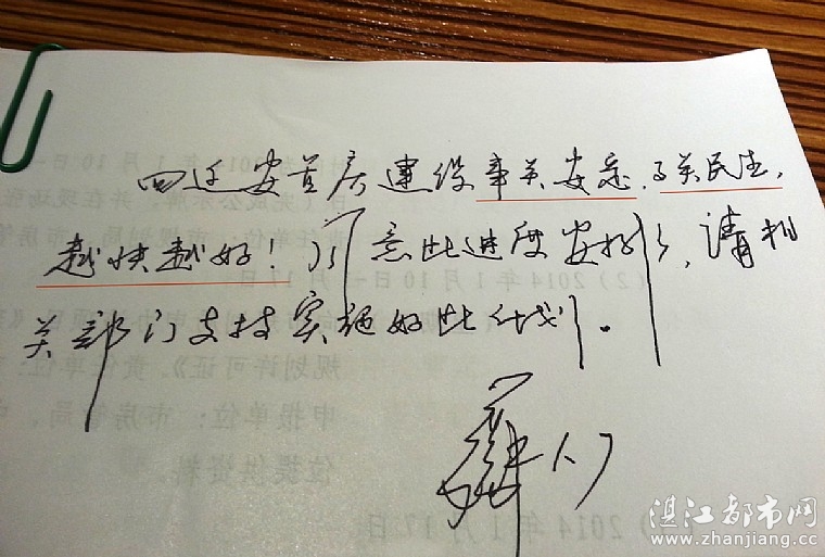 总有一些事会让人感动,会让人激励,会让人暖心。近日一个偶然机会,看到一份市领导关于民生工程文件的批示,心里一阵触动,“事关安定,事关民生,越快越好”让我感动不已,希望我这感动的心不会失望。
