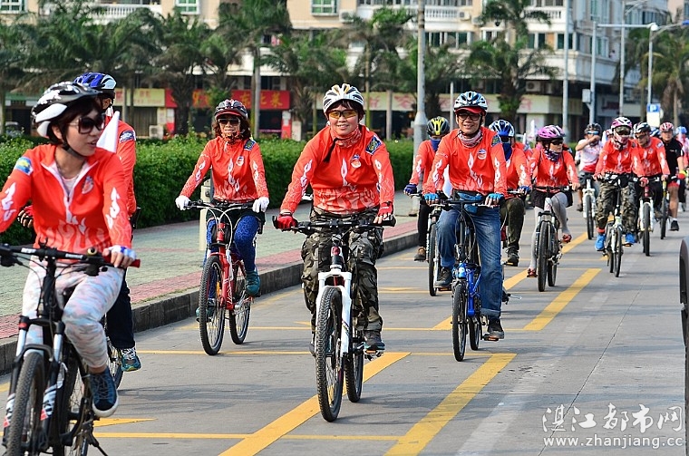 湛江风尚广告有限公司(又名乌托邦-风尚会)开业志庆骑行活动今天下午3:00正式开始,来自越野E族和铁三自行车队和桃花岛自行车队等车队们先在乌托邦风尚会(三星厂内)集中拍大合影照,然后就由骑行队伍开路越野E族紧跟其后沿着人民大道北—金沙湾—海滨路—解放东—国贸—人民大道南—银海,再返回乌托邦,全程约20公里。本人有幸随车跟拍一路的精彩,下面就请大家欣赏。