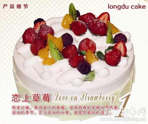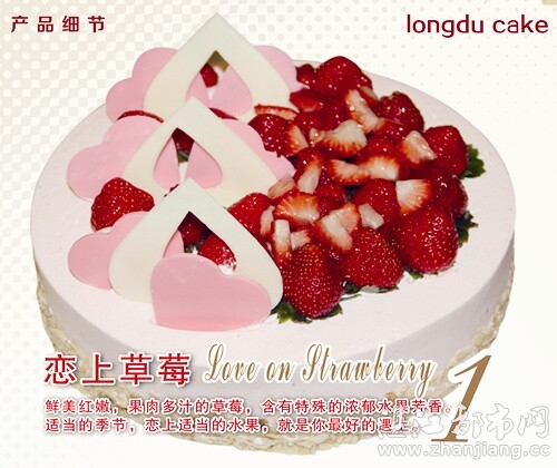 以草莓果粒馅为夹心,草莓泥对打奶油为主要原料,以各式鲜草莓做表面修饰,显得其简洁大方高贵。