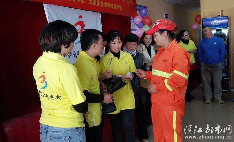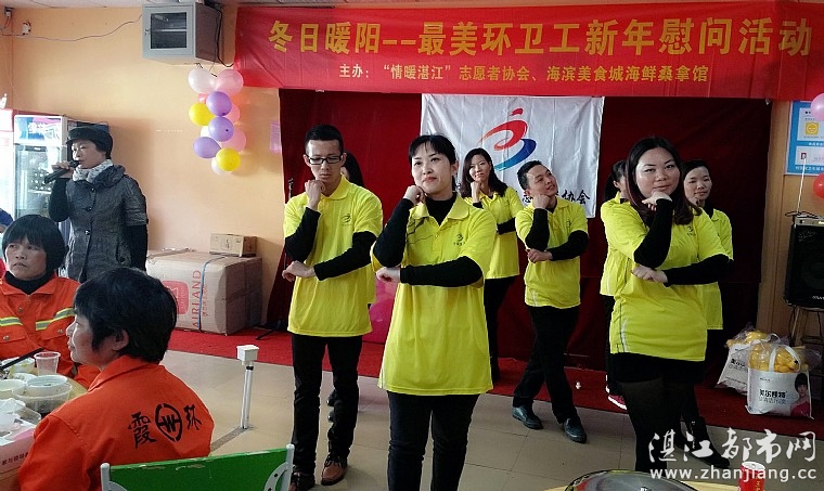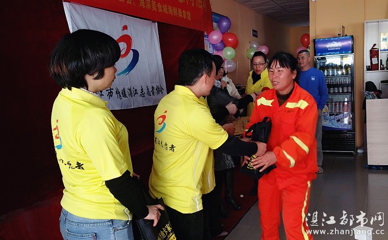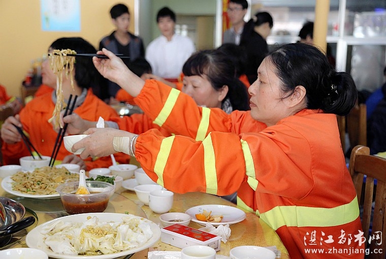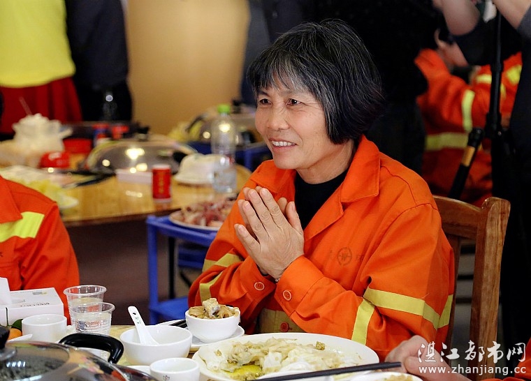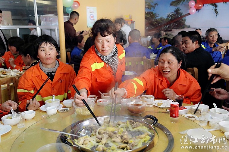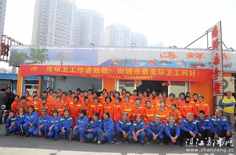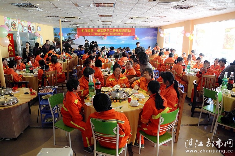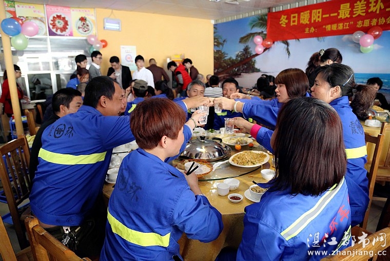 湛江都市网讯(图/文:燕燕于飞):新年即将来临之际,湛江市环卫工作者收获了特殊的新年礼物。 当天上午,为了招待这群特殊的客人,湛江市情暖湛江志愿者协会的20余名志愿者提前到达,布置活动现场;海鲜桑拿馆全体员工亦预先在餐馆里,精心准备菜品,一起为环卫工作者送上新年的祝福。 湛江市情暖湛江志愿者协会联同海滨美食城海鲜桑拿馆发起的本次最美环卫工作者新年慰问活动,旨在为环卫工作者送温暖,传递社会的正能量。此次新年慰问活动,也是湛江市的爱心商家首次宴请环卫工作者免费用餐,并且赠送新年慰问礼品。 在此,湛江市情暖湛江志愿者协会诚挚地欢迎更多的爱心商家加入到关爱环卫工作者的项目中,关注环卫工作者的生存现状,为他们做力所能及的事情,让环卫工作者体会到社会对他们的关爱。