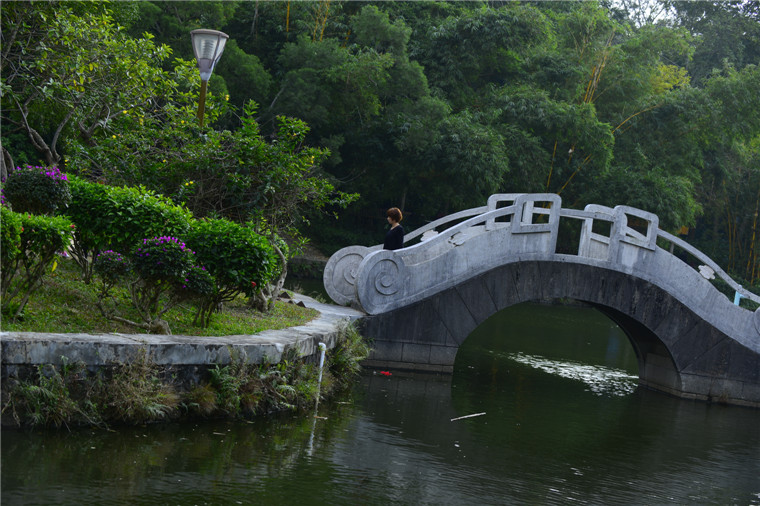 冬日的公园,小桥,花红叶绿。