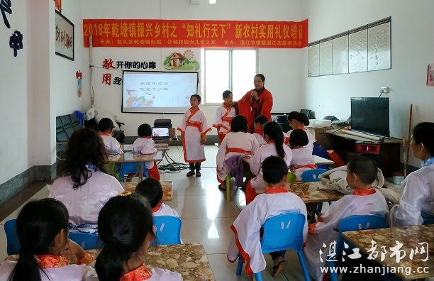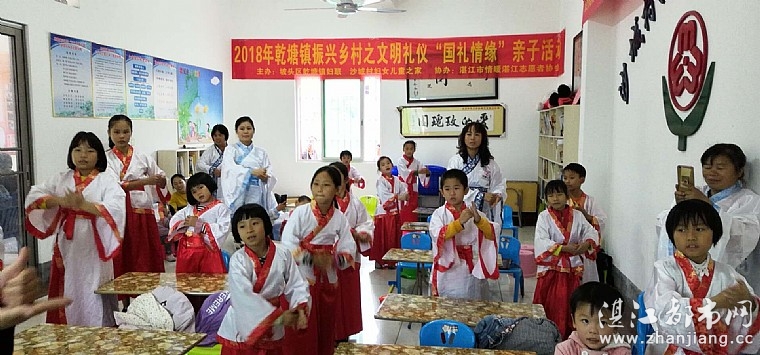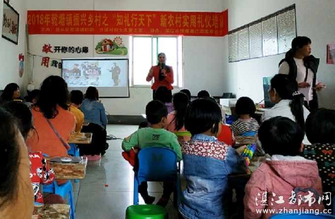 我国是闻名于世的"礼仪之邦"。深厚的文化内涵和高雅的礼仪总是互相促进,相得益彰。礼仪教育是素质教育的重要内容之一。古人云:"不知礼,无以立也."礼貌,礼节,礼仪,是一个人立身处世的根本,因此,养成一个良好的文明礼仪习惯对子孙后代教育尤为重要。为让文明礼仪知识进农村,提升村民和家庭的文明素质,形成知礼仪、讲文明、树新风、促和谐的良好社会风尚。12月15日下午,乾塘镇妇联、沙城村妇女儿童之家主办,湛江市情暖湛江志愿者协会协办的“2018年乾塘镇振兴乡村&知礼行天下新农村实用礼仪培训”、及“2018年乾塘镇振兴乡村之文明礼仪国礼情缘亲子活动”,吸引了当地30组家庭前来参加。