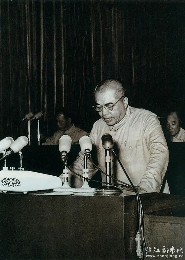 1955年7月30日,一届全国人大二次会议通过《中华人民共和国兵役法》。图为国防部部长彭德怀在会上作报告。