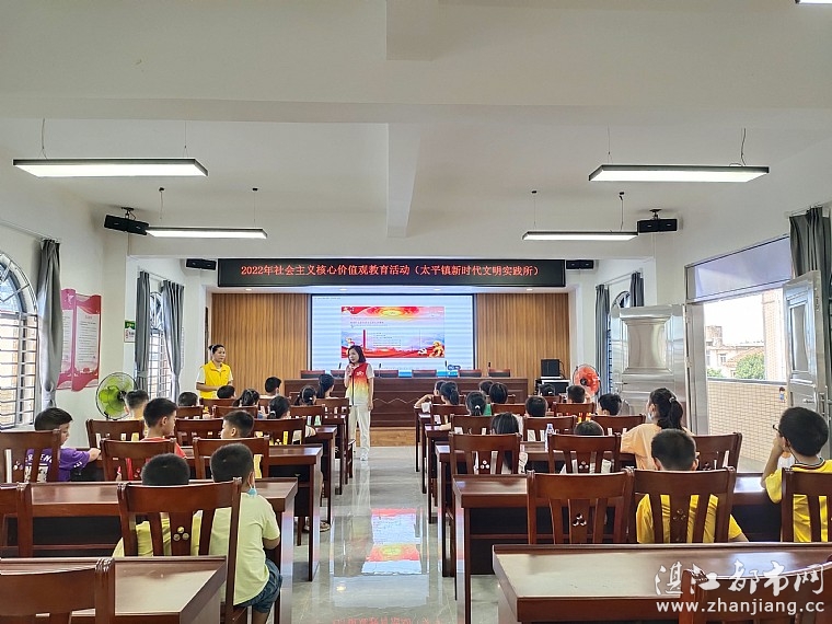为了培养孩子们从小树立正确的价值观,更好地践行社会主义核心价值观。2022年5月29日下午,太平镇新时代文明实践所、太平镇综合文化站、湛江市情暖湛江志愿者协会、N517壹基金儿童服务站(太平站)联合开展“社会主义核心价值观”教育活动。有儿童32人参与本次活动。 活动中,太平镇新时代文明实践所联络员小锦姐姐以PPT的方式用通俗易懂的语言,围绕加强社会主义核心建设的重要性、什么是社会主义核心价值观和社会主义核心价值体系及如何践行社会主义核心价值观三个方面进行了生动的讲解。