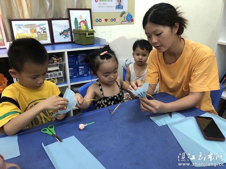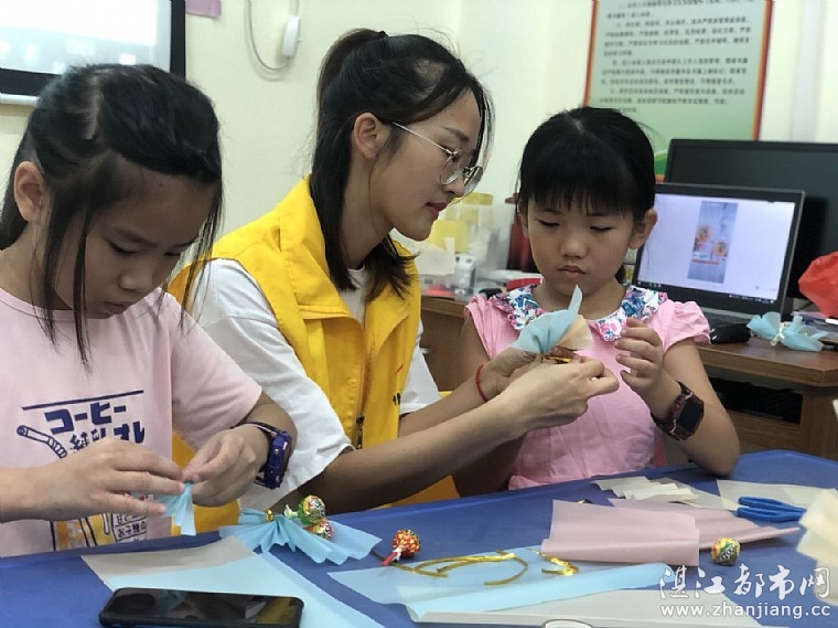 活动开始了,小朋友们认真观看着棒棒糖花束制作视频,遇到不知道怎么包扎棒棒糖包纸的地方,都会积极的问情暖湛江志愿者花束彩纸的每个细节问题。