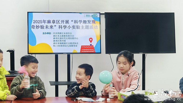 为激发孩子们对科学的好奇心和探索欲望,让他们感受到科学的奇妙,2月23日上午,共青团湛江市委员会、湛江市志愿服务联合会、麻章区新时代文明实践中心、麻章区图书馆、湛江市情暖湛江志愿者协会和N1493壹基金儿童服务站开展“科学趣发现 奇妙验未来”科学小实验主题活动。本次活动受益志愿者、家长、儿童共38人。