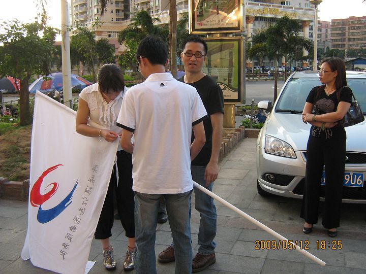 下午六点多钟情暖湛江志愿者上官、如风、帝国海军、康哥、沙子都来布置会场了