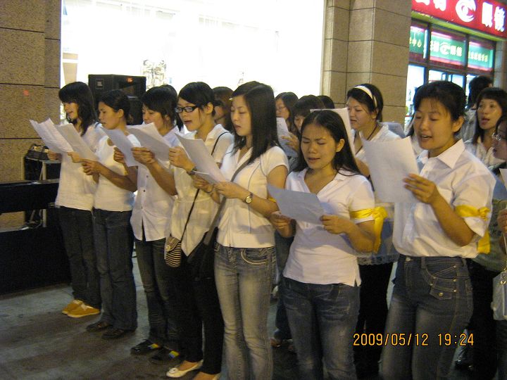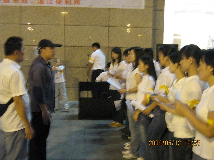 情暖湛江志愿者合唱团在现场排练《生死不离》、《让世界充满爱》《歌唱祖国》歌曲