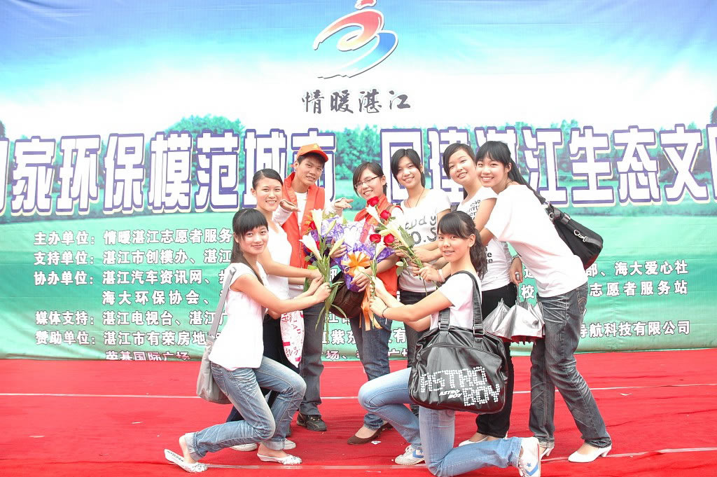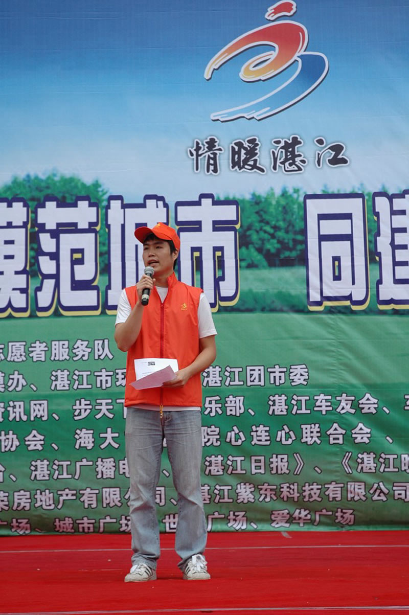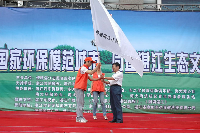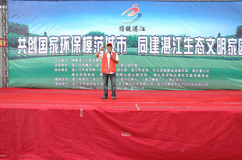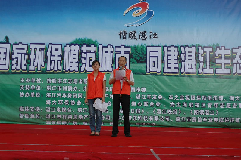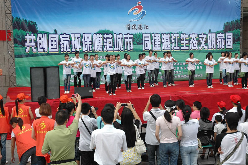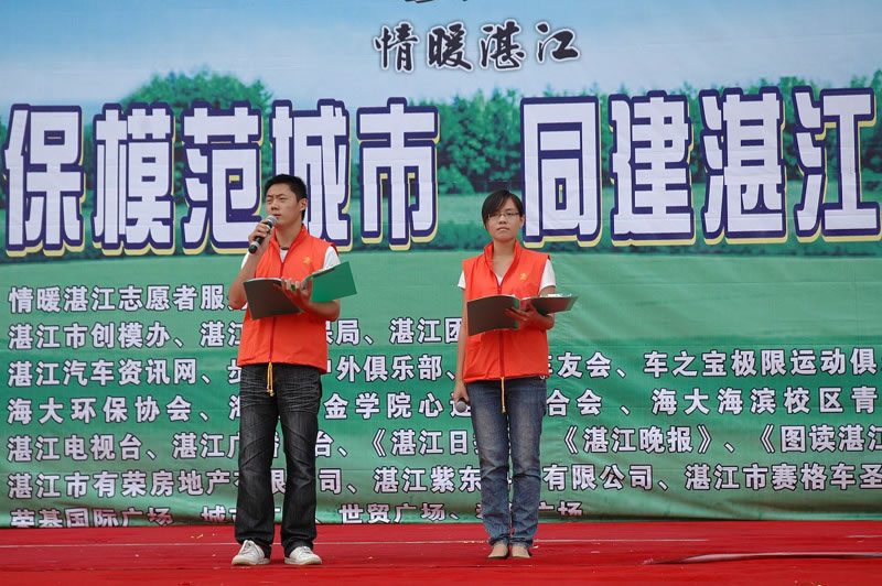 市创模办、市环保局、团市委有关领导出席了本次活动。团市委吴国雄书记首先为志愿者作动员讲话,鼓励广大青年志愿者发挥青春、智慧、力量,勇立潮头,献身环保,为支持湛江创建国家环保模范城市,建设城乡协调生态文明科学发展试点市而努力奋斗。市环保局李丕学局长向志愿者授予“情暖湛江志愿者环保服务队”队旗,并代表市创模办向环保服务队的成立致以祝贺,期望志愿者发挥更大力量,宣传、发动更广泛的市民朋友参与环保,投身到伟大的创建国家环保模范城市的工作中来。活动当天,志愿者以舞台文艺表演、派发环保知识手册、宣传车队、募集支持创模签名、清除牛皮藓等多种形式向市民进行创模宣传及环保理念的传递,引导广大市民关注环保、了解创模,从荣基国际主会场到城市广场、世贸广场、爱华广场等分会场,市民均反应热烈,不分男女老少,都纷纷参与志愿者的环保小知识互动游戏和签名支持环保支持创模活动。湛江日报、湛江电视台、湛江广播电台等新闻媒体均对本次活动进行了跟踪报道,给予了高度评价。