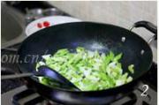 炒锅倒适量的油,大火烧辣,下入西芹和百合翻炒,炒至颜色稍变时,加入一勺半盐,继续翻炒。