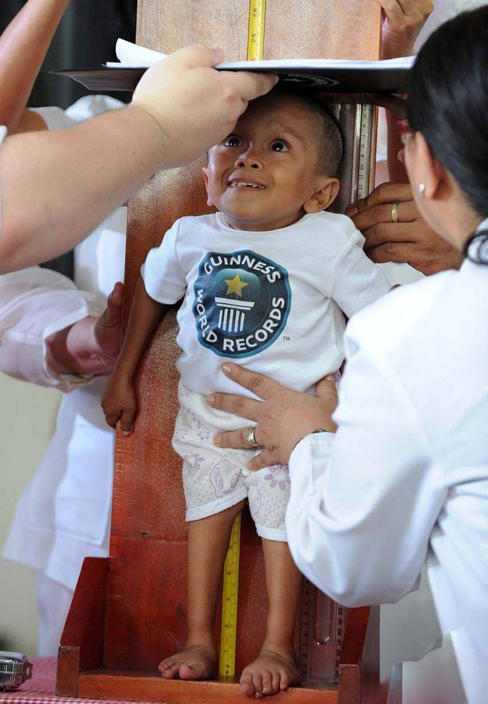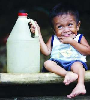 ![]() ![]() 由于一家人太穷,铁匠父亲的毕生收入也不足以为他应付最少10万披索医药费(约1.5万元人民币)。不过他没埋怨,第一天成为男子汉,便首次尝一杯几乎跟他一样高的啤酒。他1岁开始停止长高,3名弟妹则发育正常。