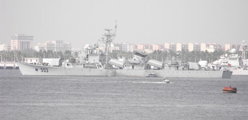 553 韶关号,江湖II级(053H1型)。1984年3月31日开工,1985年5月2日下水,1985年9月24日服役。80年代末进行了改装,改装包括100炮系统、37炮系统、雷达、电子设备等。