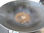 锅里面放2勺酱油,几片姜片,少许水。大火烧。