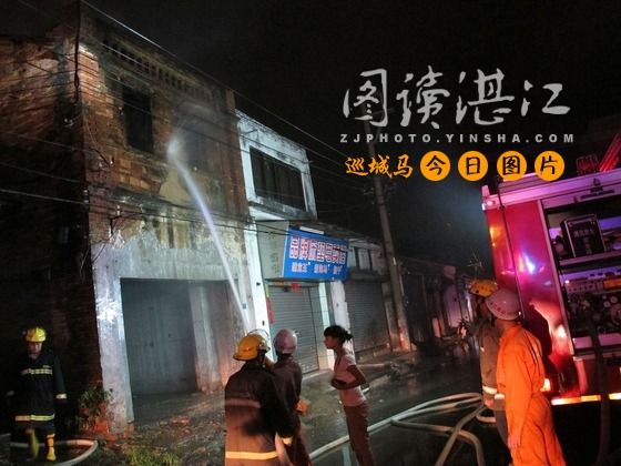 洪屋街偏东方向浓烟滚滚的现场时,已有5辆大小消防车在灭火,霞山爱国派出所、交警以及街道办均已有人在场协助抢险、维持秩序和疏导交通等,而尽管发生于晚上近8点的火势虽不算大,但发生“火烛”的民居残旧且又与其它民居相当接近及密集,给灭火带来一定的难度,但经过消防官兵的艰苦努力和机智勇敢奋战,终于于晚上9时将所有火苗扑灭。