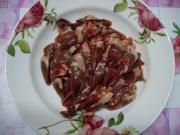 将鸡心一分为四,过沸水汆熟,加少许生抽腌制。