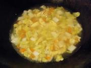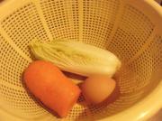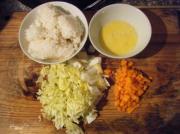 鸡蛋打散,白菜切碎,胡萝卜切丁,米饭这一碗我没都放,只放了一半少一点,泡饭嘛,用不了那么多。