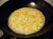 水烧后放入米饭,略煮。加盐,鸡精调味。