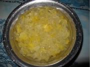 - 4把银耳、红枣、白果加水先大火煮开,再改文火煮50分钟左右,然后把木瓜丁放入大概煮10分钟,在启锅前加入枸杞略微煮一下,最后加入冰糖煮化即可。