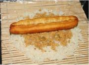 1、糯米我是晚上淘好,加适量水放冰箱里,这样呢早上起来直接蒸就可以了 2、卷的时候可别把保鲜膜给一起卷进去喽 3、里面的馅料,可以自己选择,可以加白糖芝麻馅的,也可以放点火腿青瓜沙拉酱类,这个大家随意,哈