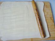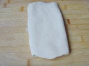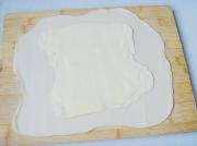 将擀薄的马淇林放在中间,像叠被子那样用面饼把马琪琳包起来。