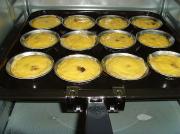 捏好的塔皮里装上蛋塔水(装七八分满即可)。