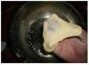 左手收拢面皮,右手大拇指往里压馅。