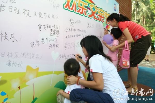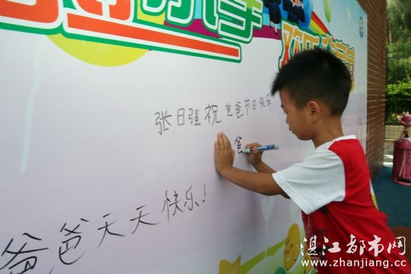 由湛江都市网和小脚印国际幼儿园联合举办的“大手拉小手,欢乐父亲节” ——亲子游园活动于6月16日早上在小脚印幼儿园成功落下帷幕。参加本次活动的共50个家庭,人数超过两百人。活动现场爸爸妈妈和宝宝们一起书写祝福语,共同参与互动游戏并且相互鼓励,使得现场处处充满着温馨的气息。