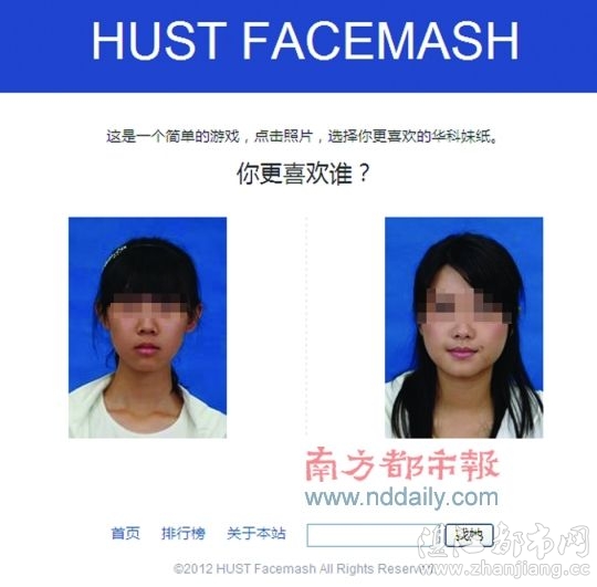 随机挑两名女生“PK” 从域名到页面,hust-facemash.com的设计者丝毫不掩饰对facebook雏形facemash.com的模仿,甚至在网站介绍的开头就引用了facebook创始人扎克伯格的一句话,因此有同学评论“完全是照搬Mark Zuckerburg的做法嘛”。 2004年,还在读书的扎克伯格黑掉了哈佛大学网站,盗取学校9座宿舍楼中所有学生的照片,搭建了网站facemash.com,让其他学生在线对照片打分,以选出学校里人气最高的男生和女生。尽管很火,但这个网站很快就被校方关闭,扎克伯格也因为盗取图片而被留校察看。后来,他的这段经历通过电影《社交网络》而为人所熟知。 hust-facemash.com从域名到功能,都与facemash.com相似。打开首页是随机挑选的两名华中科技大学女同学的证件照片。网站上的文字介绍说,“这是一个简单的游戏,点击照片,选择你更喜欢的华科妹纸。你更喜欢谁?” 网站还设计了一个排行榜的功能,列出10名最受欢迎的女同学和她所在的院系名。此外,网站还提供了一个查询功能,只要输入姓名,即可找到相应女生的证件照片。 在网站介绍中,hust-facemash.com匿名的设计者说,“我们想通过HUST FACEMASH提醒大家,学校网络系统的不完善是对学生隐私的不尊重与漠视。我们希望借此机会督促学校修复学生信息系统的漏洞,保护每一位同学的隐私。同时,尽快解决选课系统容易宕机,教育网接入不稳定、速度慢等诸多问题。” 火速成为校园热门话题 这个网站,最早在6月17日被发现在新浪网的应用平台中出现,被删除之后,服务器转移到了美国。有网友在微博上说,“有人报了网警说肖像隐私泄露,结果说服务器在加州,网警貌似够不着。” hust-facemash.com很快就在华科学生中流传开了,成为了很多学生网上讨论的话题。 华中科技大学同济医学院的网友“doublex”,看过照片后在“起航同济”论坛中说,“hust-facemash.com真是毁人不倦啊!我的女神噢,就这样被摧毁了!”同校网友“佛爷”跟帖评论说:“排行榜建规学院的多啊,毕业前一定要去。”校友“初拥”也回帖:“你跟作者提下意见,让给弄个汉纸排行呗。” 网友“阳拉普达”在华中科技大学的贴吧中抱怨,“说实话,就HUB上那照片,现实中再漂亮的都毁了,搜了一个校花级的美女,那叫一个瞎眼啊。”一同抱怨的还有“wu9215”,他说,“我大机械为啥连个6分的都没有?”网友“此ID未审查通过”则评论说,“人类已经无法阻止我们看华科妹子的素颜照了。” 有女生要求关闭网站 同时,也有很多学生对此表示愤怒。 “梨涡浅笑cl”就在一个评论照片的帖子后留言,“第二个是我舍友闺蜜,怎么可以随便不经别人同意搞照片呢?”有一名华中科技大学女生还按网站上留下的gmail邮箱,给网站设计者写了一封邮件,在邮件中她说,因为自己的照片、名字、学院出现在网站中,她的第一反应是恐惧。她认为,网站自称的提醒校园网修补漏洞只是托辞,目的其实是展示女生的照片,“谨以个人身份,恳请你们尽快关闭这个网站,好吗?” 华中科技大学人文学院教师夏增民,也在人人网上批评这个网站的设计者是绑架学生信息、转移视线。 来源:半岛家园