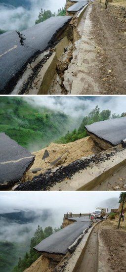 据新华社7月6日电近日,一条关于云南某二级公路试通车两个月就坍塌的微博引发网民热议,网友称这是继去年“史上最短命公路”后,云南出现的又一条“短命公路”,而且连官方回应也与去年一样:公路坍塌的原因是强降雨引发的自然灾害。 道路被冲垮50米 5日,记者沿元绿二级公路从元阳县城驱车赶往事故现场。坍塌的路段位于一处深沟险壑旁,山上的大量土石连同约50米长被冲垮的道路已掉入山沟。施工人员已在垮塌公路侧上方抢修了一条临时便道供车辆通行。 网友质疑盲目动工 据绿春县委宣传部通报,7月1日至2日,绿春县戈奎乡、岩甲检查站一带出现了今年以来强度最大的单点暴雨。元绿二级公路建设指挥部指挥长、红河州交通局副局长姬志平称,公路的招投标都是按照正规程序,且设计单位云南省公路规划勘测设计研究院、建设施工单位重庆交通建设集团都是资质很好的大单位,也不存在“层层转包”等问题,事故原因主要还是强降雨引发的山体滑坡所致。 云南省交通运输厅政策法规处处长马德芳告诉记者,5日,由省交通运输厅基建处副处长带领相关专家组成的工作组已赶往现场实地调查。 有网友称,强降雨、地质复杂这些问题都应该是工程设计时需考虑的问题,不应成为推卸责任的理由,真正的问题应该找寻天灾背后的人祸。在修路之前,是否对修路的环境进行考查,没有一个安全的考查数据就盲目地动工修路本来就是对人民的不负责。 >>事件回放 7月2日凌晨3时左右,元绿二级公路k72+800米加梅村处,出现山体滑坡,导致道路路基缺口达50余米。2日凌晨4时左右,一辆载有4人的面包车在坍塌路段发生车祸,一名乘客当场遇难,2人受伤,1人失踪。 来源:半岛家园